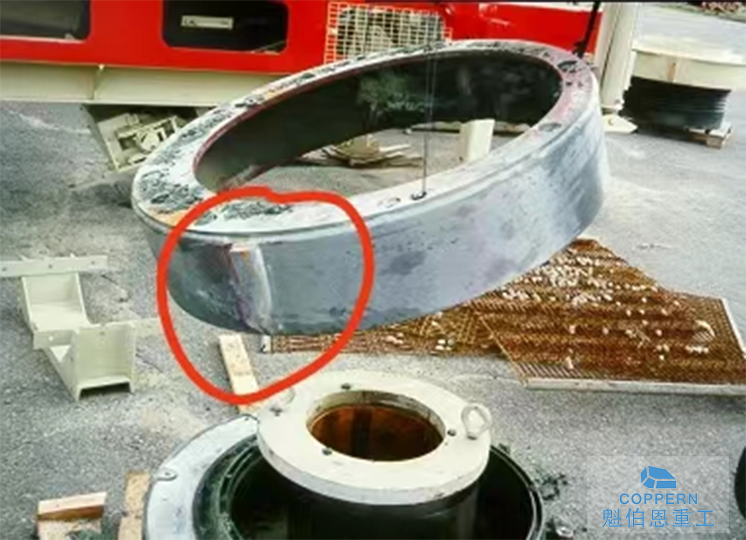不可使碎積料越積越高,容易加劇配重護板的磨損,降低使用壽命,甚至造成配重 體的磨損、甩油等問題,增加風險以及修復成本。