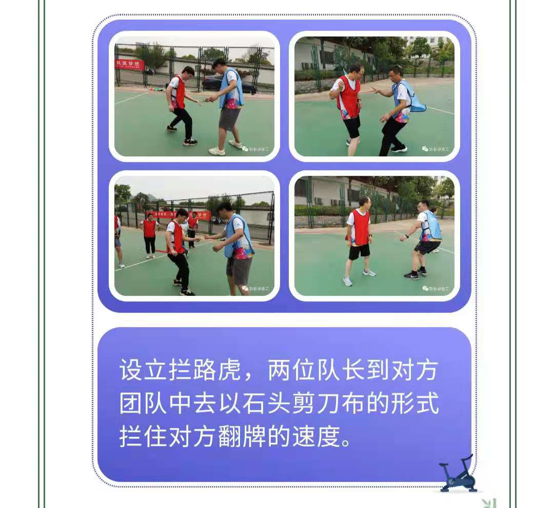 設(shè)立攔路虎,兩位隊(duì)長(zhǎng)到對(duì)方團(tuán)隊(duì)中去以石頭剪刀布的形式攔住對(duì)方翻牌的速度。