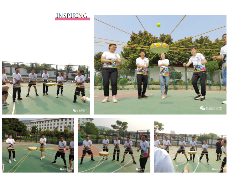 項(xiàng)目描述:全體隊(duì)員用一只拴著許多繩子的鼓去接彈在空中的排球。每隊(duì)學(xué)員,在規(guī)定時(shí)間內(nèi),盡可能多的完成任務(wù)這是一個(gè)要求團(tuán)隊(duì)高度協(xié)作的項(xiàng)目,要求隊(duì)員在保證安全的情況下,創(chuàng)造盡可能多顛球記錄!