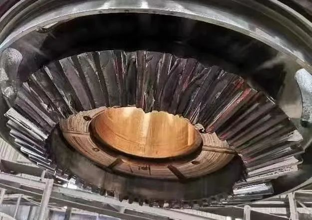 安裝大小齒輪時(shí)未將齒輪嚙合間隙調(diào)整到設(shè)計(jì)標(biāo)準(zhǔn)值之內(nèi),或者運(yùn)行過程中,其他影響齒輪間隙的備件(如:多缸系列的上、下推力軸承、單缸系列的偏心耐磨板、機(jī)架襯套等)磨損嚴(yán)重甚至磨損不均勻,接觸面有傾斜未及時(shí)更換,從而影響大小齒輪間嚙合間隙,在生產(chǎn)中易產(chǎn)生打齒現(xiàn)象。